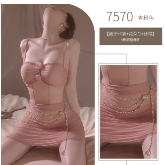 pleated tight hip steel ring gathered pajamas hot perspective temptation with waist chain